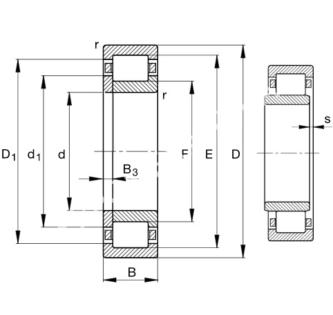 Роликовые подшипники типа NUP имеют два борта на наружном кольце. Воспринимают высокие радиальные нагрузки, а так же двунаправленные осевые силы, осуществляя при этом осевое ведение вала в двух направлениях. Цилиндрические подшипники NUP не позволяют взаимного осевого смещения наружных и внутренних колец. Не имеют уплотнений. Рабочая температура от -30 °С до +150 °С. Сепаратор из полиамида предназначен для температур до +120 °С.Характеристики